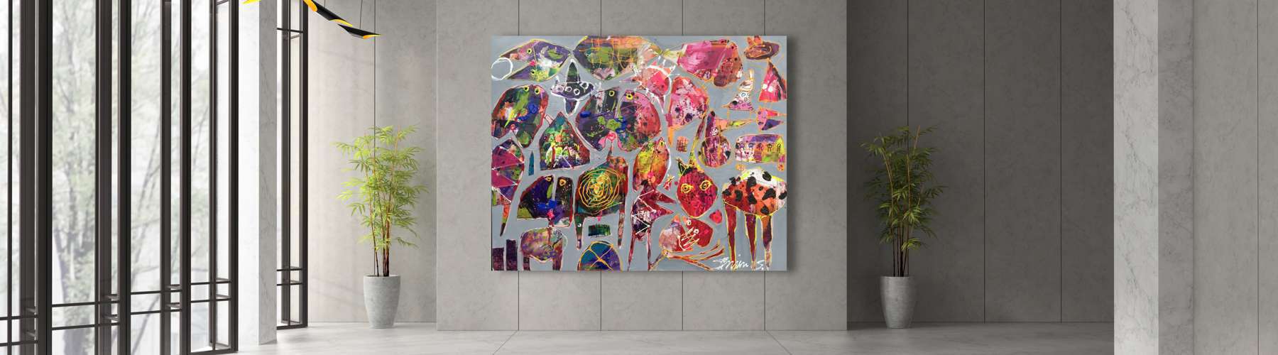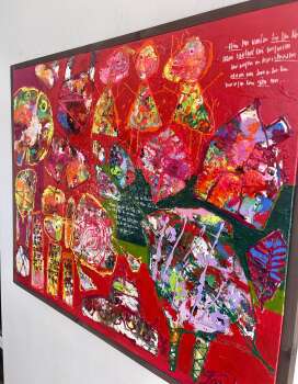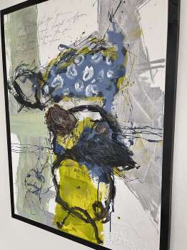 "Efter ombygningen manglede vi noget til at give den store hall lidt liv. Maleriet fra Finn Sørensen passer perfekt ind og vi elsker det. Tak Finn - for at se, hvad vi efterspurgte".
